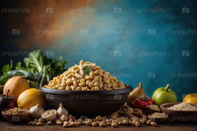 Фон плоская еда синий фон, открытка Всемирный день продовольствия AI Generative