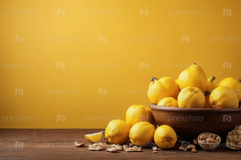 Фон плоская еда жёлтый фон, открытка Всемирный день продовольствия AI Generative