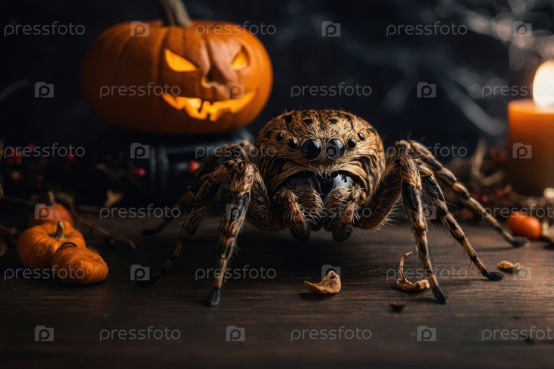 Искусственный интеллект насекомого-паука на темном пугающем фоне тыквы Хэллоуина