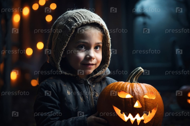 Девушка держит тыквенный фонарь от Хэллоуина пугающий генератив AI