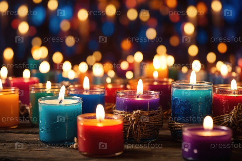 Алтарь церкви с горящими декоративными свечами для празднования Дня всех святых