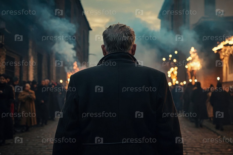 Генеративный мужчина пожилой человек в ночь на День всех святых в церкви, украшенной горящими свечами
