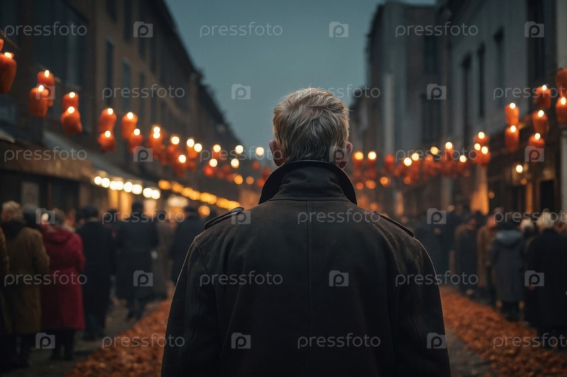 Генеративный мужчина пожилой человек в ночь на День всех святых в церкви, украшенной горящими свечами