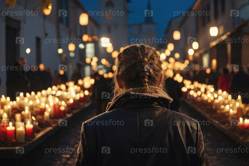 Девчонка-генератив в ночь на День всех святых в церкви, украшенной горящими свечами