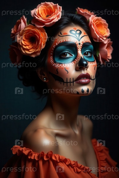 Молодая женщина в костюме и макияже для Дня мертвых Día de los Muertos