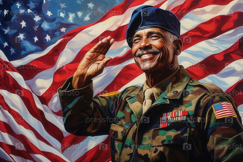 Афроамериканец в виде приветствия фон флаг США День памяти ветеранов День искусственного интеллекта