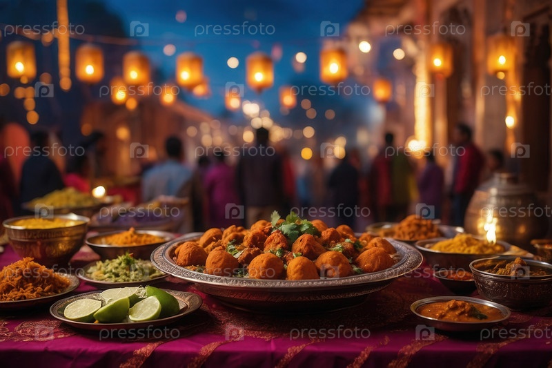 Дивали традиционные индийские блюда из карри, риса и сладостей, декоративный фон AI Generative