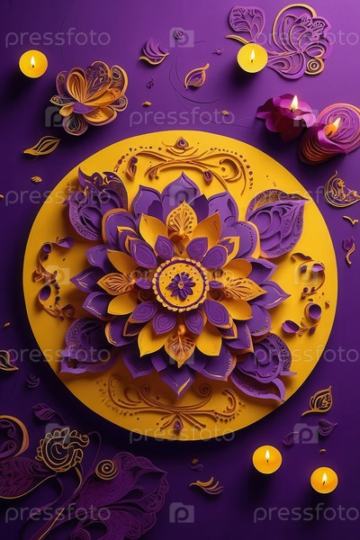 Традиционный индийский красочный фиолетовый желтый дизайн узора Фестиваль Дивали фон AI Generative