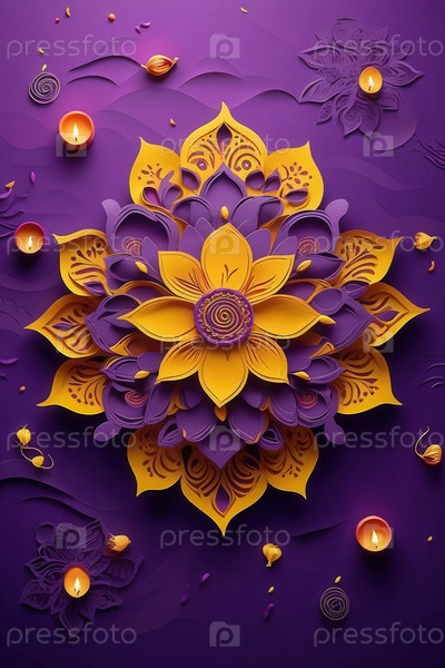 АИ генеративный традиционный красочный индийский фиолетовый желтый дизайн Дивали