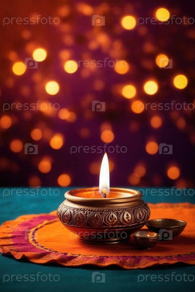 Генеративные красочные украшения Дивали с традиционными свечами, масляными лампами, яркими цветами и декоративными мисками