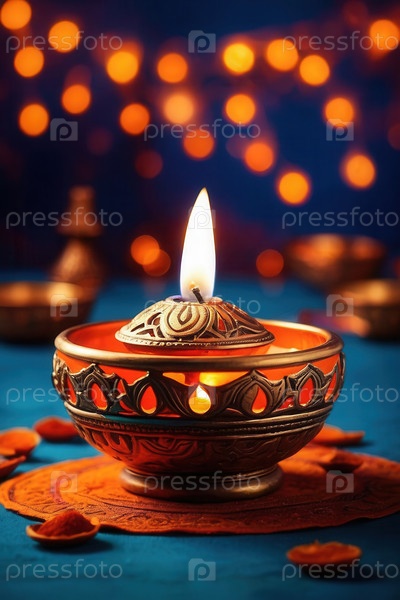 Генеративные красочные украшения Дивали с традиционными свечами, масляными лампами, яркими цветами и декоративными мисками