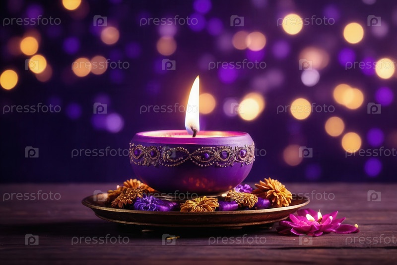 Генеративные красочные украшения Дивали с традиционными свечами, масляными лампами, яркими цветами и декоративными мисками