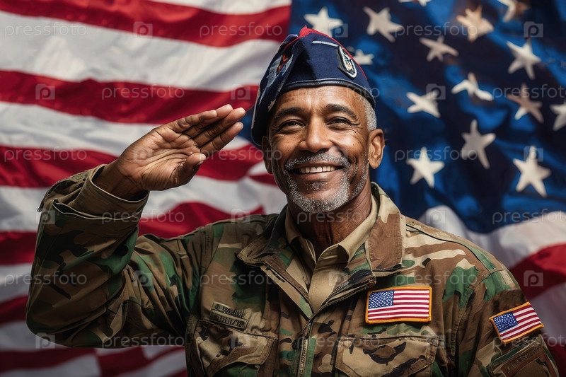 Афроамериканец в виде приветствия фон флаг США День памяти ветеранов День искусственного интеллекта