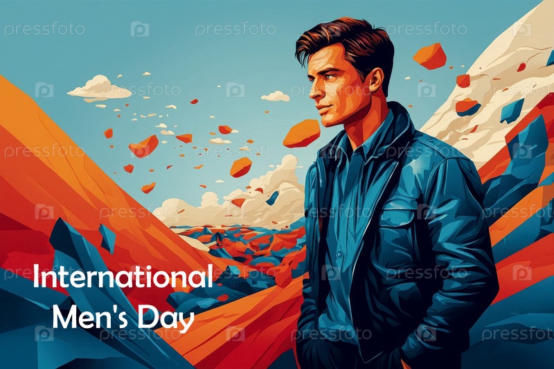 AI Generative Postcard Card World International Men's Day гордый красивый молодой парень на синем фоне