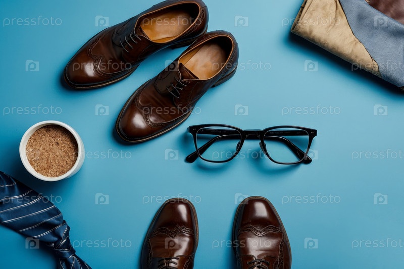 AI Generative Flat Сложите на синем фоне мужские аксессуары, одежду и очки
