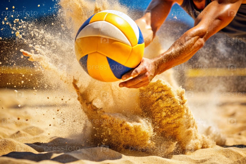 острый момент в игре. волейбол падает на песок. игрок пытается ударить по мячу. концепции летних олимпийских видов спорта
