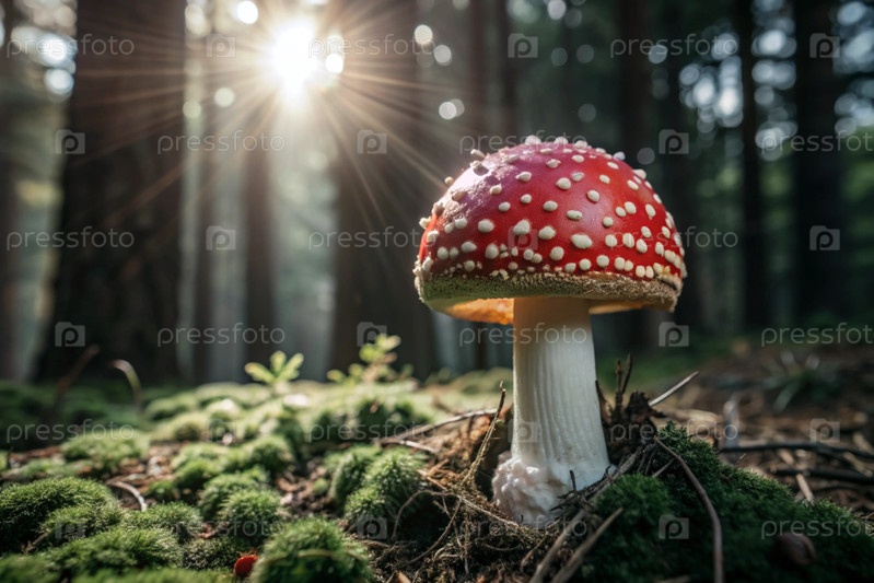 Большой ядовитый красный гриб в лесу муха-агарик микродозировка и отравление