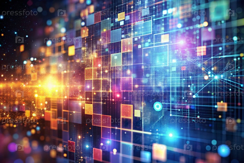 Высокотехнологичный материал. Закрытие линий и кубов цветными огнями, создание абстрактного и футуристического дизайна. Концепция развития и технологии будущего