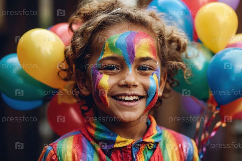 Генеративный день счастливых детей Копирование пространства с текстом и ребенком на фоне красочных воздушных шаров