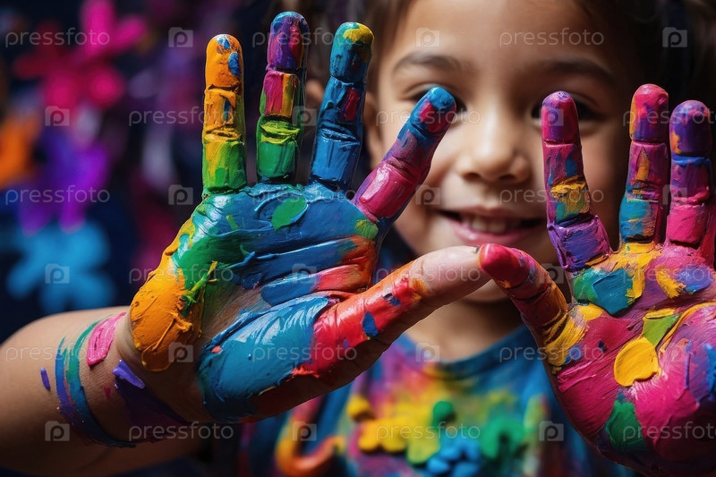 Счастливый день детей Копия открытки Пространство Текст Детская рука в цветной краске На фоне генеративного ИИ