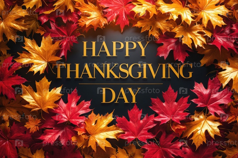 Текст благодарственной открытки на осеннем фоне красочных желтых и красных листьев AI Generative leaves