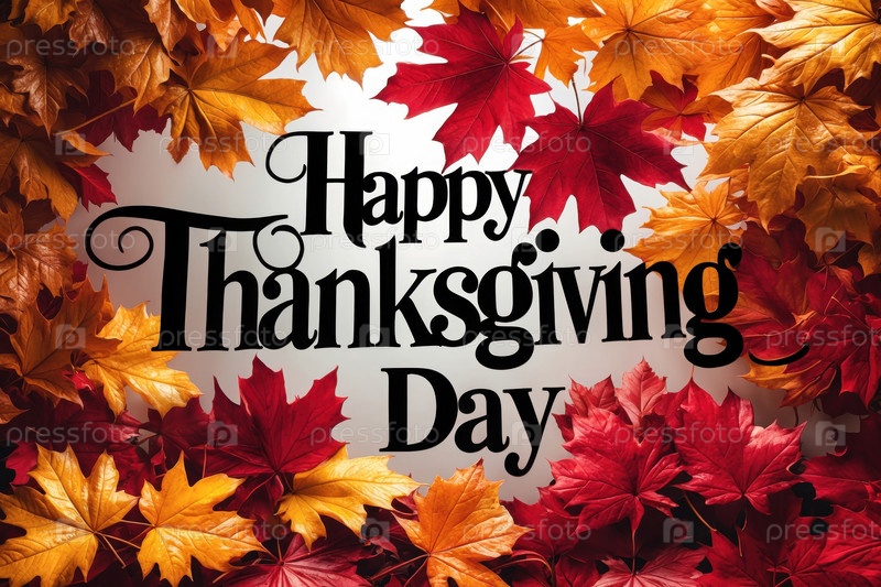 Generative text of Благодарственная открытка на осеннем фоне красочных желтых и красных листьев