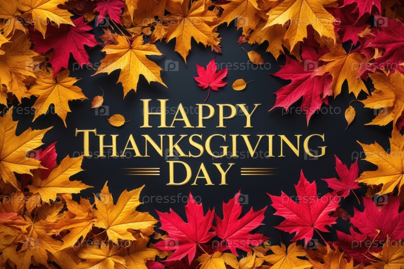 Generative text of Благодарственная открытка на осеннем фоне красочных желтых и красных листьев