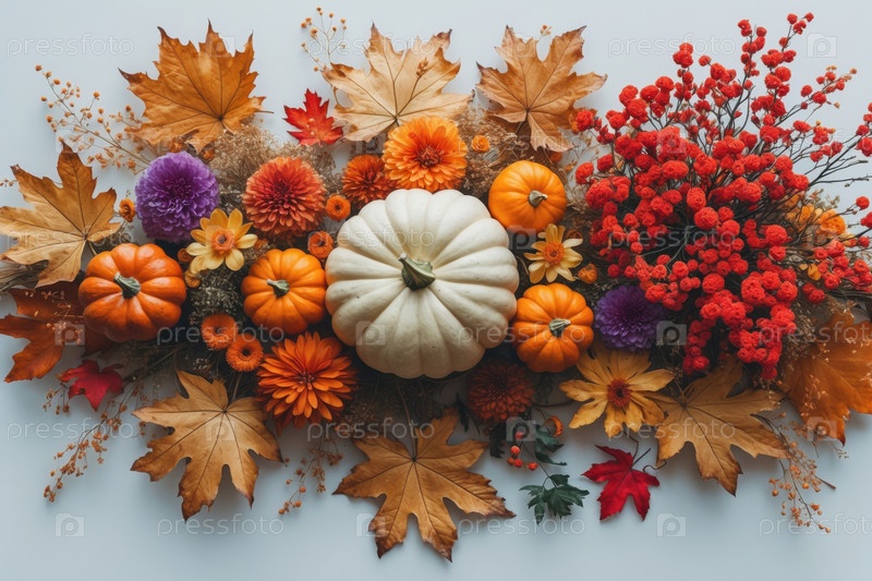 Карточка благодарения копии осенний фон текст красочные тыквы оставляют AI Generative