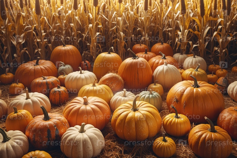 Карточка благодарения копии осенний фон текст красочных тыквен на ИИ генеративной ферме