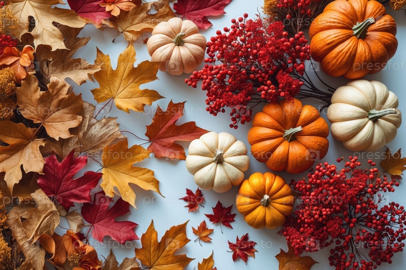 Карточка благодарения копии осенний фон текст красочные тыквы оставляют AI Generative