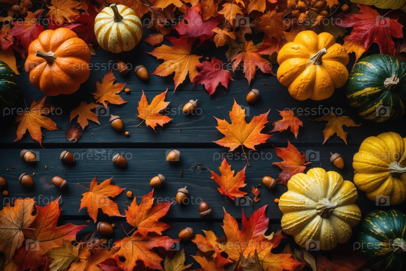 Карточка благодарения копии осенний фон текст красочные тыквы оставляют AI Generative