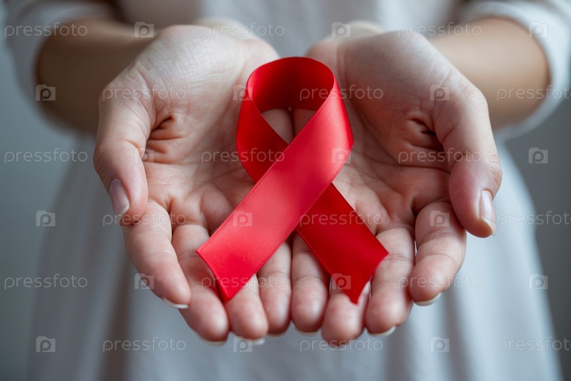 генеративная человеческая женщина, держащая символ красной ленты в День борьбы со СПИДом