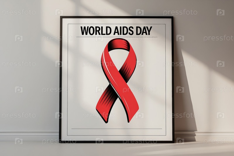 Плакат с символом красной ленты для Всемирного дня борьбы со СПИДом и ВИЧ