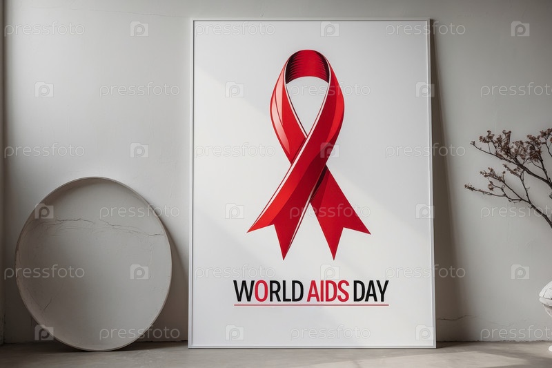 Плакат с символом красной ленты для Всемирного дня борьбы со СПИДом и ВИЧ