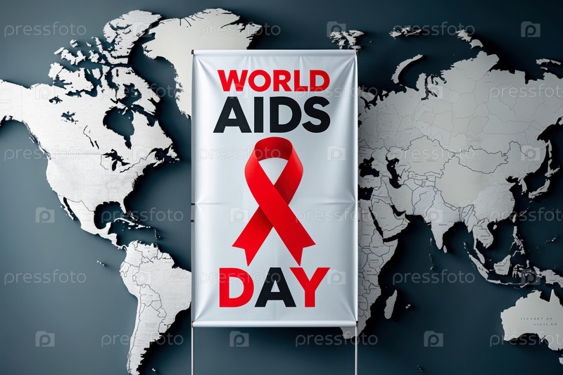 Плакат с символом красной ленты для Всемирного дня борьбы со СПИДом и ВИЧ