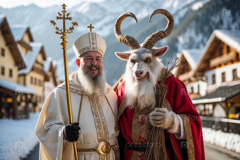 Генеративные герои Рождества Святой Николай и жуткое чудовище Крампус в день зимнего праздника