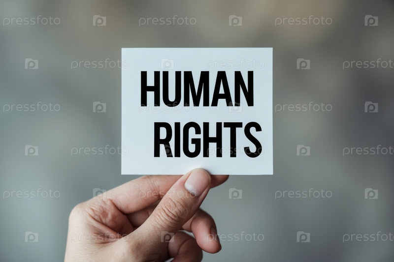 Генеративная карта ИИ для Международного дня прав человека, мужчина держит в руке плакат с надписью