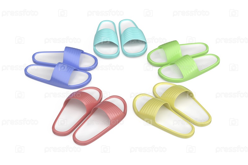 Группа из пяти пар резиновых слайдов разных цветов