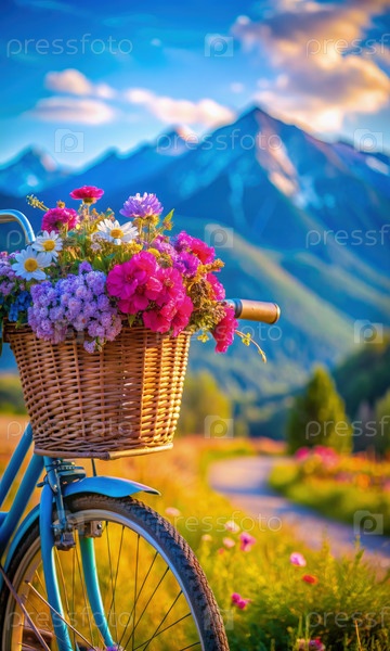 Велосипед с корзиной, полной цветов