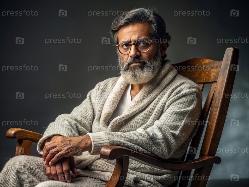 Мужчина с бородой и очками сидит на стуле Generating AI
