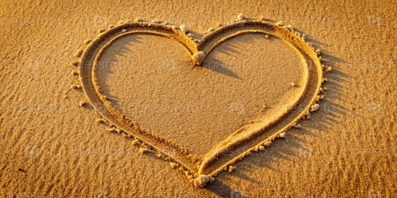 Сердце, нарисованное в песке на пляже и генерирующее ИИ