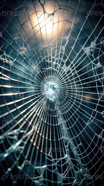 Разбитое стекло с солнечным светом, генерирующее ИИ