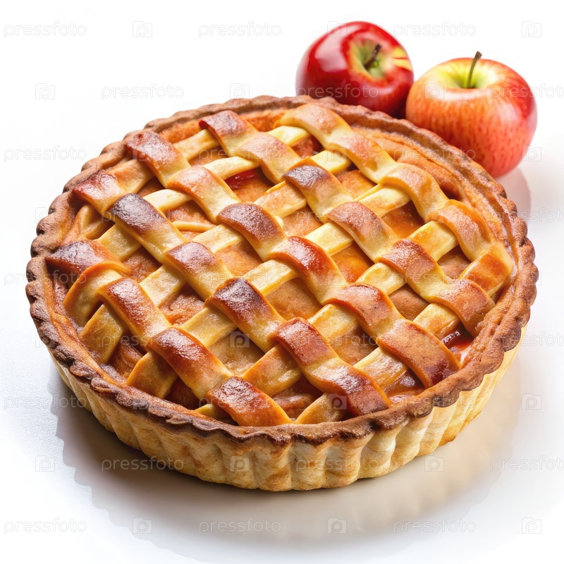 Яблочный пирог рядом со свежим яблоком на белом фоне