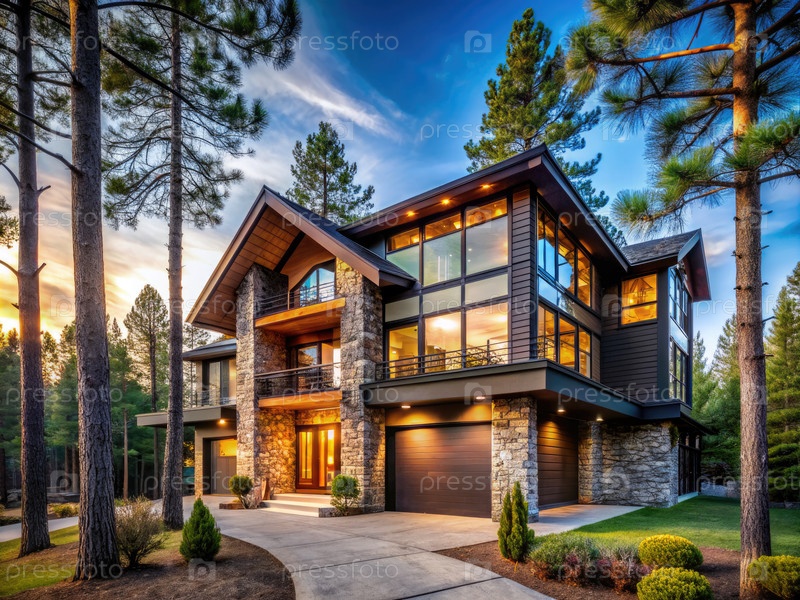 Большой дом, окруженный деревьями и окнами