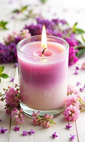 Розовая свеча на деревянном столе, генерирующая ИИ