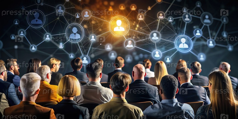 Группа людей, сидящих перед социальной сетью.Генерирование ИИ