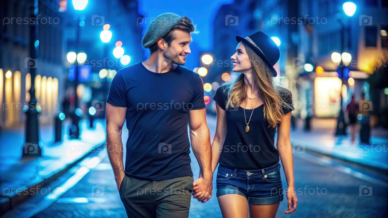 Мужчина и женщина ходят по улице, держась за руки
