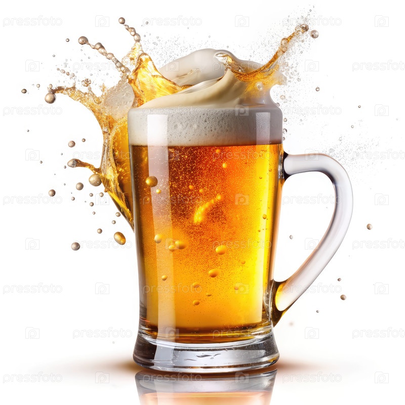 Стакан пива с жидким брызгом, генерирующий ИИ