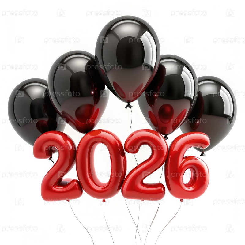 Черно-красные шары с числами 2016 года Generating AI