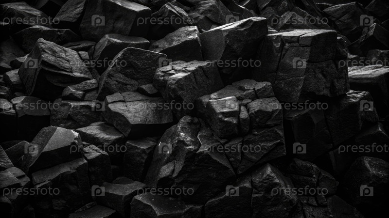 куча черных гранитных камней. угольный камень. генерирующий ИИ